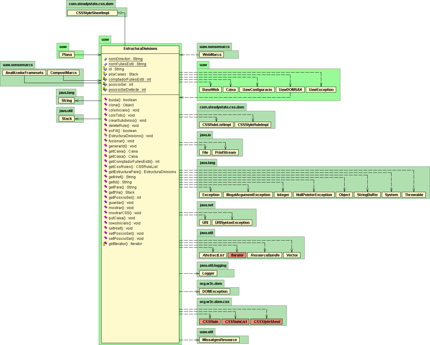 EstructuraDivisions es una particularización de hoja de estilo especializada en guardar la información de compaginación de una página XHTML. La información se guarda en una estructura de árbol, en la que los nodos son reglas CSS (de la clase Caixa), cada una con unas propiedades básicas de posicionamiento.